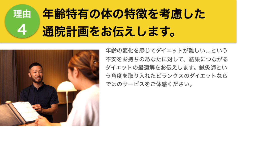 体の専門家が健康的で効果的なダイエット施術で「将来の健康不安」を解消します。